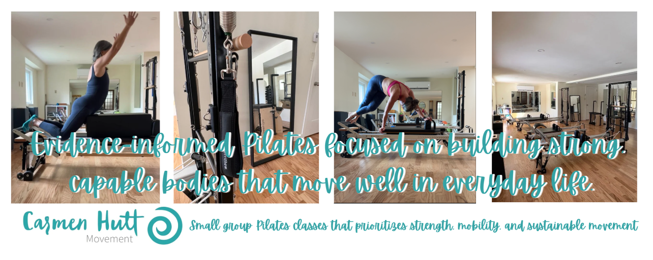 At Carmen Hutt Movement, Pilates is taught with these principles in mind—prioritizing quality of movement, appropriate challenge, and an approach that supports long-term health and movement.